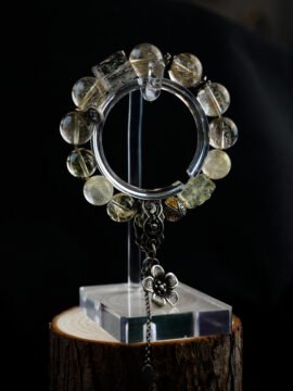 金红石被誉为“财富圣石”,每一颗细小的内含物都蕴含着财富的力量,如同一把开启财富之门的金钥匙。黄水晶是“招财护身符”,散发着温暖明亮的光芒,象征着积极向上和富足,如同阳光般吸引财富和机遇。黑金超级糖晶则被视为“能量载体”,其独特的外观蕴含着神秘的力量,能够稳定能量场,助力事业稳步发展。历经岁月沧桑的老银,如同一位古老的智者,守护着能量。所有这些元素的能量交相辉映,共振形成强大的磁场。
