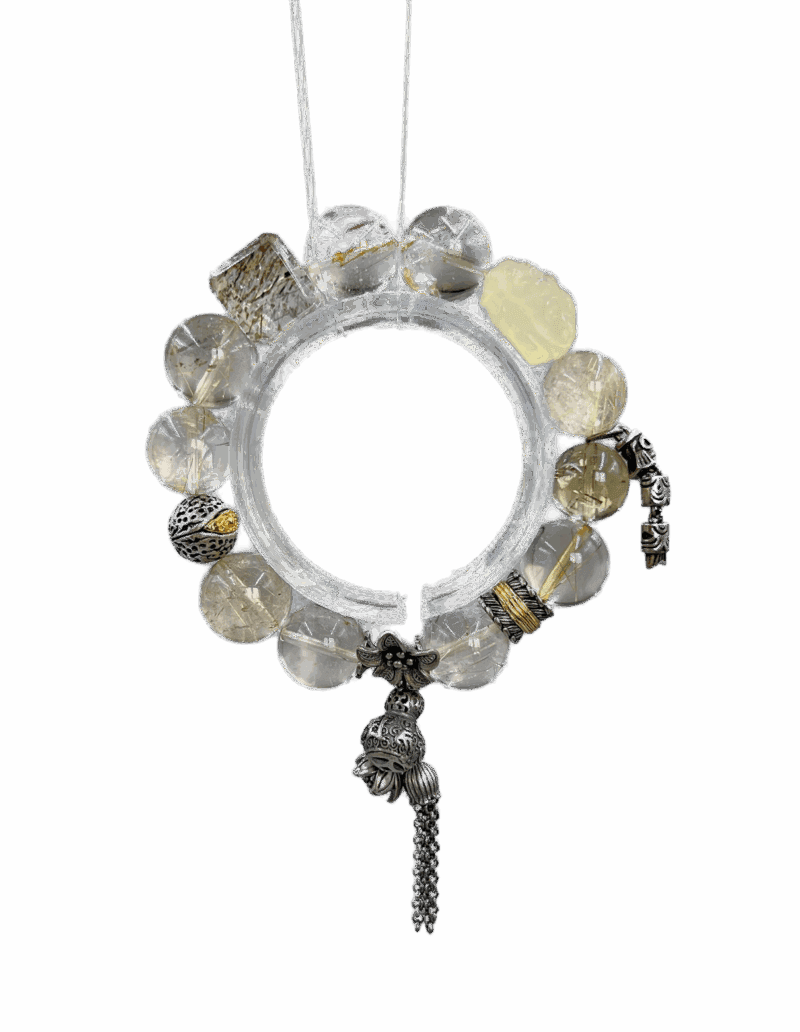 汇聚天地灵气,开启财富与事业的蓬勃之旅!在古老的东方玄学中,土元素滋养万物。它对应太阳神经丛脉轮,掌管着我们的财富和事业。这款珠宝采用金红石、黄水晶、黑金超级糖水晶和古银精心打造,凝聚宇宙能量,带来财富,带来好运,专为追求财务自由、事业进步和精神探索的人士打造。